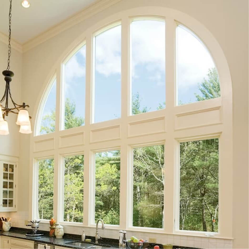 Окна нестандартных размеров и остекление проемов большой площади. Изготавливаются и монтируются с учетом ветровых, статических нагрузок и требований к теплопередаче
